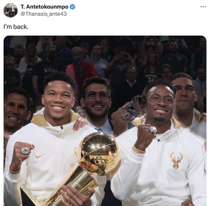 Shams进行了补充报道,随着萨纳西斯回归雄鹿,这也意味着字母哥在经历了一个夏天的探索之后将留在密尔沃基开始新赛季。