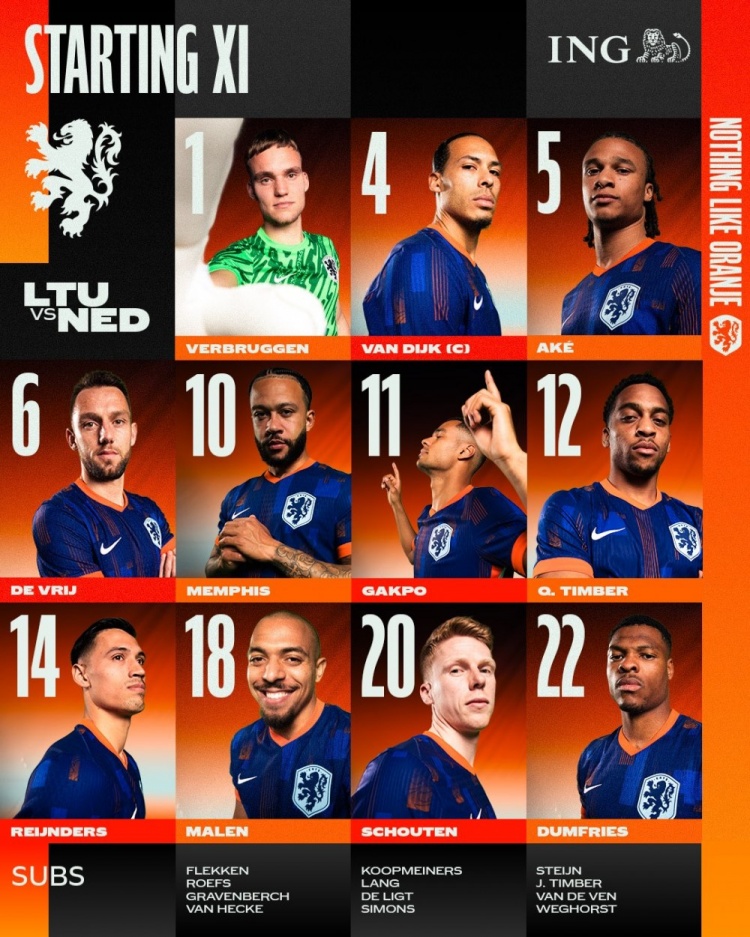 凯发k8国际-荷兰vs立陶宛首发:德佩、加克波领衔锋线,赖因德斯、范迪克出战